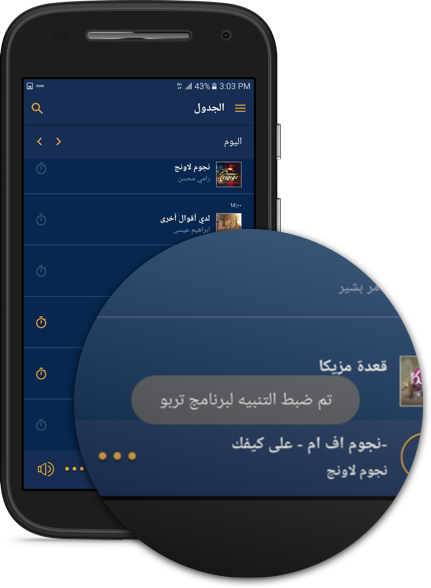 تعرف على مواعيد إذاعة/عرض برامجك المفضلة واضبط المنبة ليذكرك بموعدها