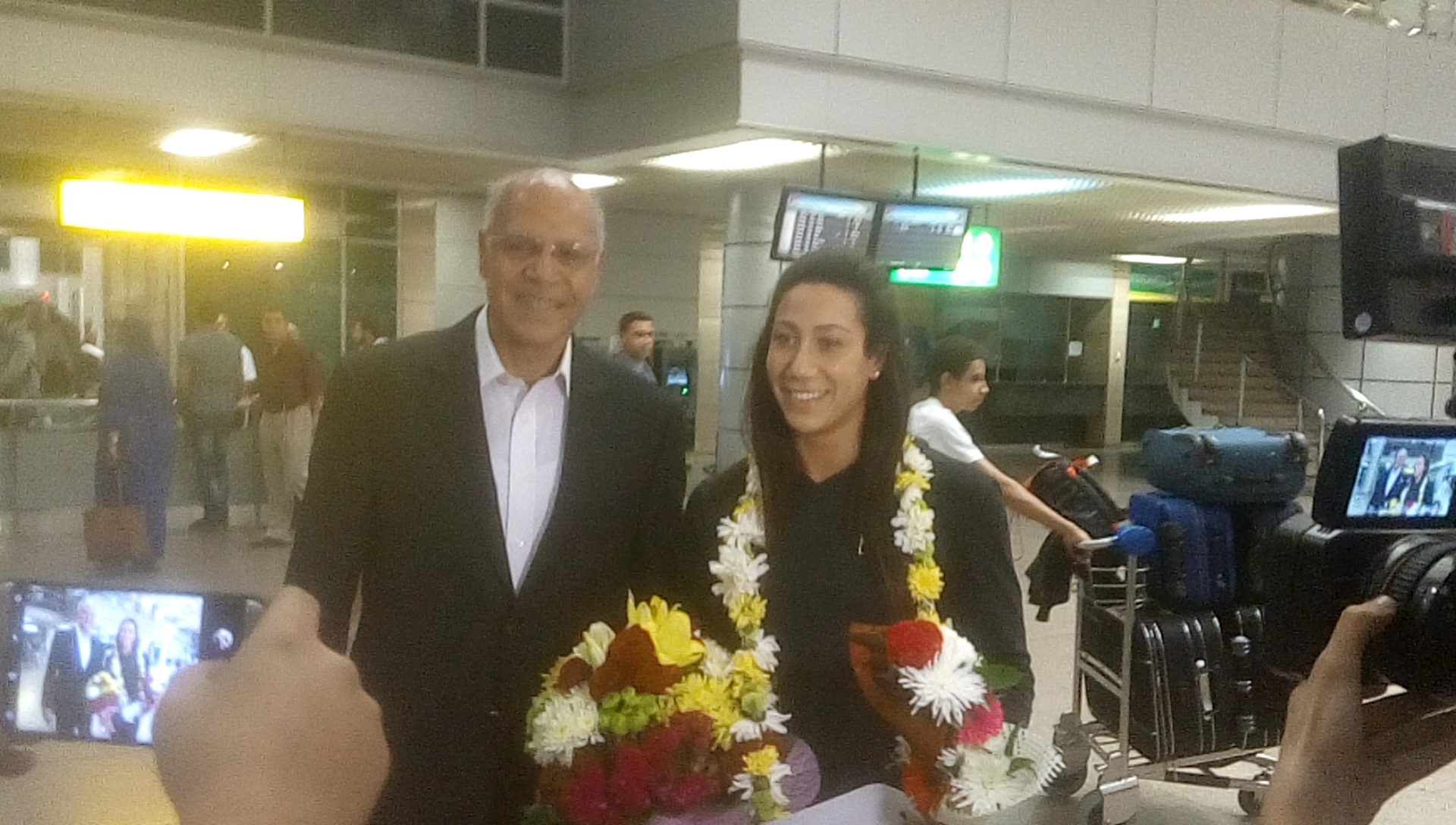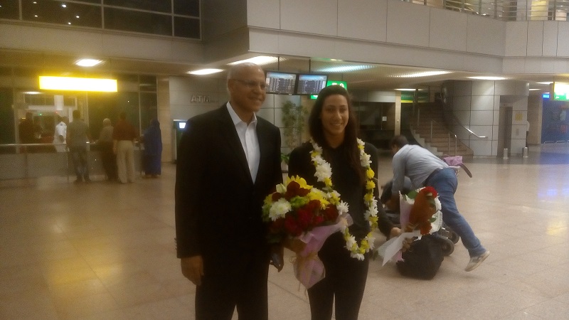 عادت البطلة المصرية فريدة عثمان، إلى مصر قادمة من المجر، بعد إحرازها الميدالية البرونزية في سباق 50 متر فراشة ببطولة العالم.