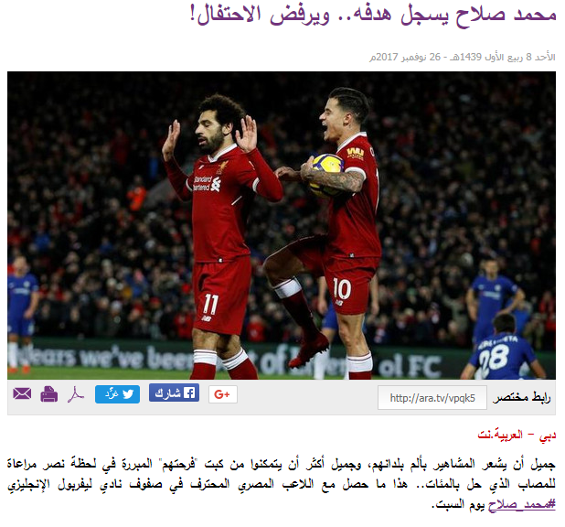 يحظى محمد صلاح لاعب نادي ليفربول الإنجليزي، باهتمام بالغ من وسائل الإعلام العالمية والعربية، خاصة بعد التألق الكبير الذي حققه خلال الفترة الماضية مع فريقه وتصدره ترتيب هدافي الدوري الإنجليزي برصيد 10 أهداف.