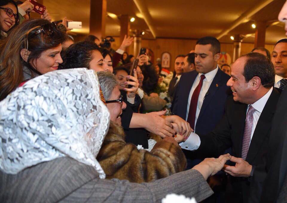 وقوبل السيسي خلال زيارته إلى الكاتدرائية الجديدة في العاصمة الإدارية، أمس السبت، بعاصفة من التصفيق والهتافات عقب دخوله إلى القاهرة، حيث هتف عدد كبير من الحاضرين: “بنحبك يا ريس”.
