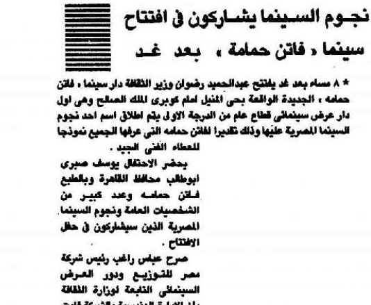 سينما فاتن حمامه هي الحاجة الوحيدة اللي كانت بتحمل اسم سيدة الشاشه العربية و كانت في نفس الوقت بتحمل ذكريات كل سكان حي المنيل اتهدت و هايطلع مكانها برج .. عشان نفضل ماشيين في سكتنا اللي دايما طريقها الخراب و هي ان مفيش حاجة ليها قيمة في مجتمعنا غير الفلوس