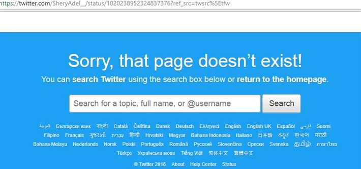 ولم تستمر تغريدة شيري، سوى 24 ساعة حيث قررت عدم التواجد، واختفت صفحتها الرسمية، حيث تبين أنها اغلقت الحساب.