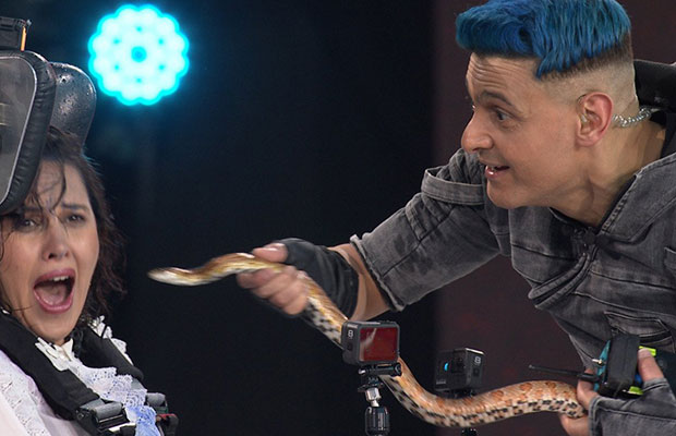 ويقوم رامز جلال، بتوجيه عدة أسئلة للضحية، قبل أن يحرك الكرسي الموصل بأداة تحكم ويرفعها في الهواء وفي كل الاتجاه وسط صراخ من الضحية.