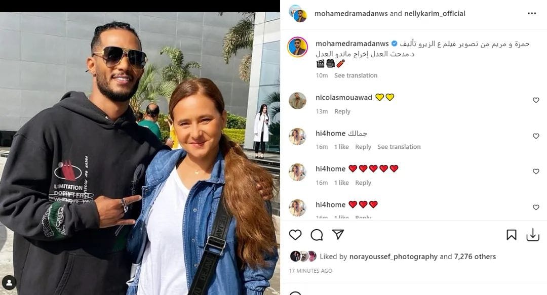 وعلق رمضان على الصورة، قائلا: “حمزة ومريم من تصوير فيلم ع الزيرو، تأليف دكتور مدحت العدل، إخراج ماندو العدل”.