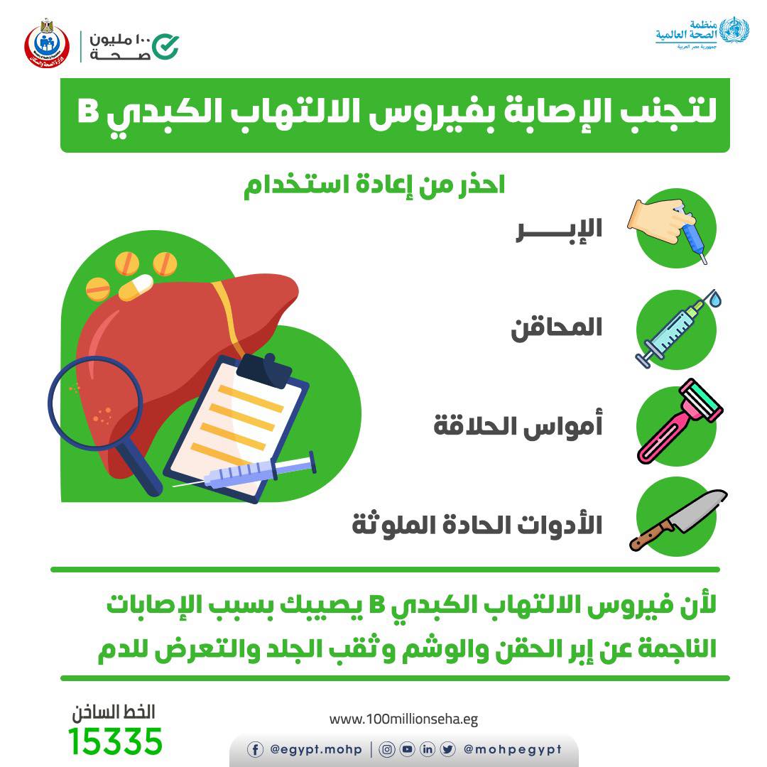 وقالت وزارة الصحة والسكان أنه يمكن تجنب الإصابة بفيروس الالتهاب الكبدي بي من خلال البعد عن الحق غير الآمن واستعمال الادوات الحادة الملوثة.