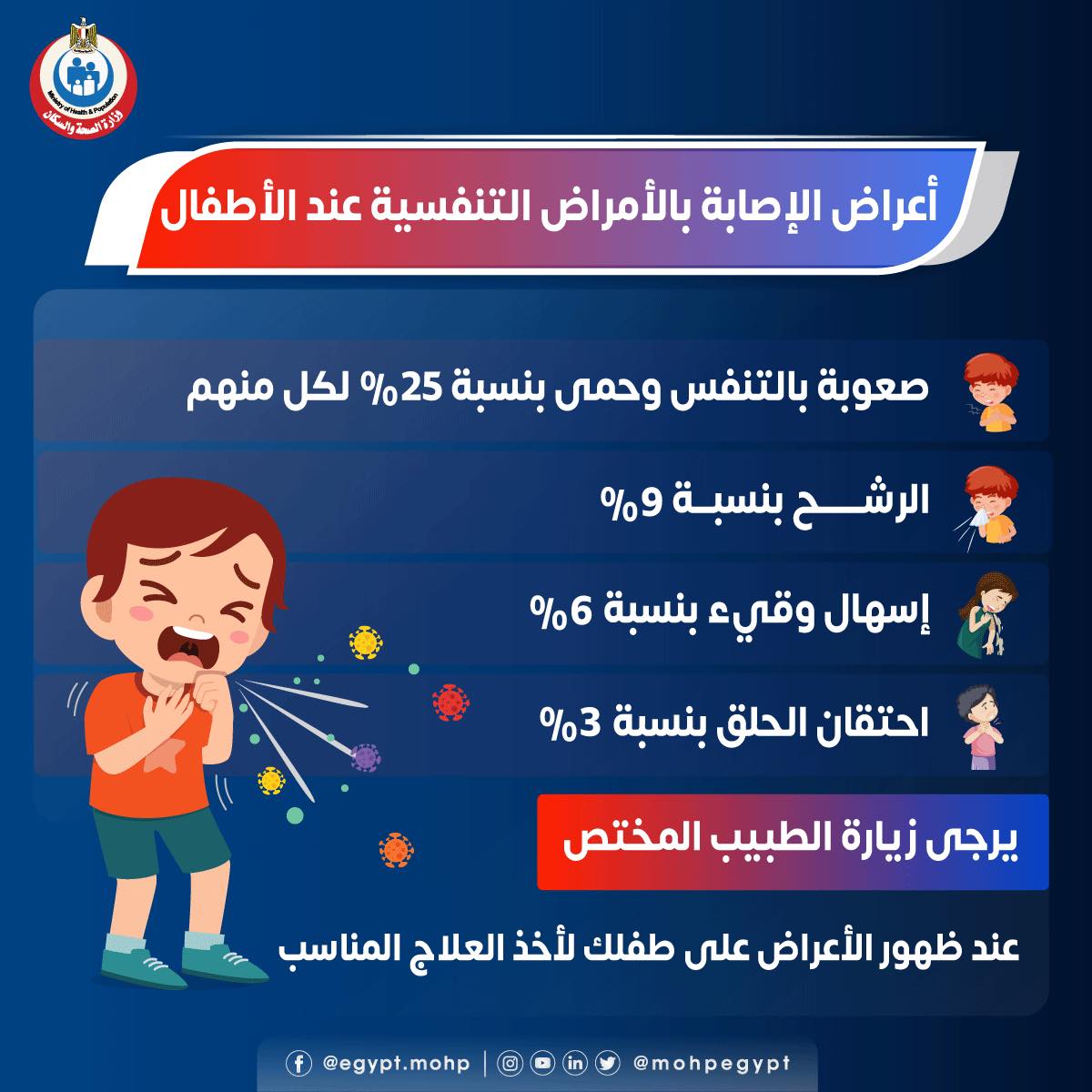 كشفت وزارة الصحة أن قطاع الطب الوقائي أجرى مسحة لعدد كبير من الأطفال المصابين بالأعراض التنفسية، وتبين أن 73% من الأطفال مصابين بالفيروس التنفسي المخلوي وهو فيروس واسع الانتشار يصيب الأطفال بشكل كبير.