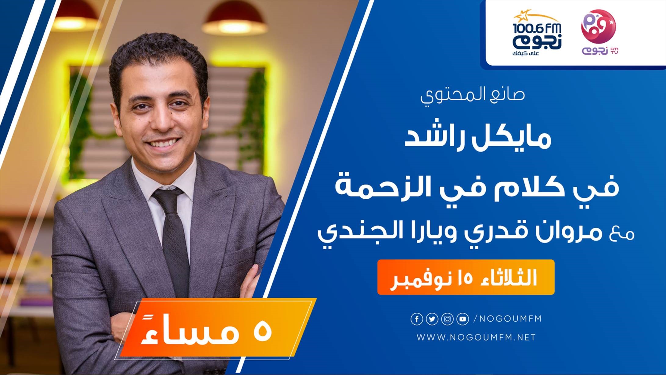 يستضيف مروان قدري ويارا الجندي، غدًا الثلاثاء، صانع المحتوى مايكل راشد، عبر برنامج «كلام في الزحمة»، على «نجوم إف إم»، من الساعة 5 إلى 7 مساءً.