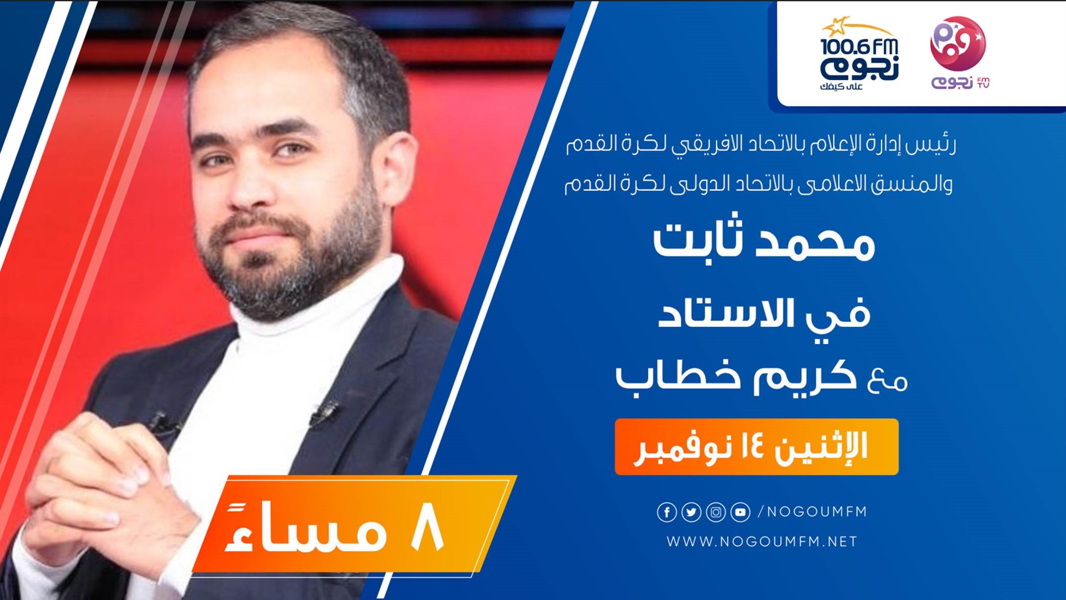 يستضيف كريم خطاب في حلقة، غد الاثنين، من برنامج «في الاستاد» على «نجوم إف.إم»، محمد ثابت، رئيس إدارة الإعلام بالاتحاد الأفريقي لكرة القدم (كاف) والمنسق الإعلامي بالاتحاد الدولي لكرة القدم (فيفا).