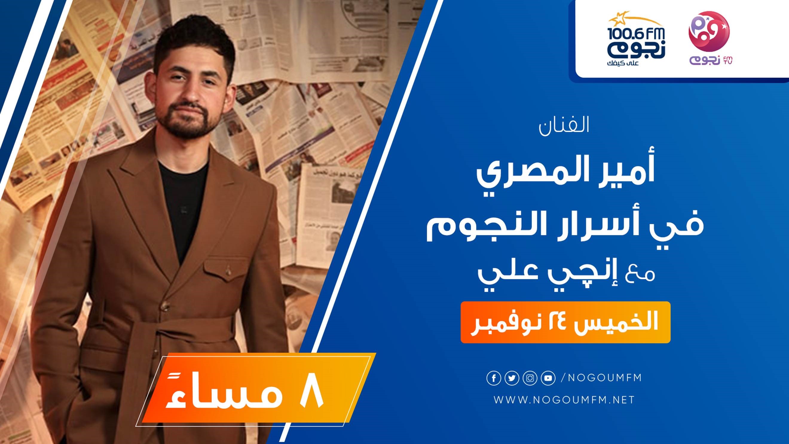 تستضيف إنجي علي في حلقة، غد الخميس 24 نوفمبر، من برنامج «أسرار النجوم» على «نجوم إف إم»، الفنان أمير المصري، للحديث عن آخر وأحدث أعماله الفنية.