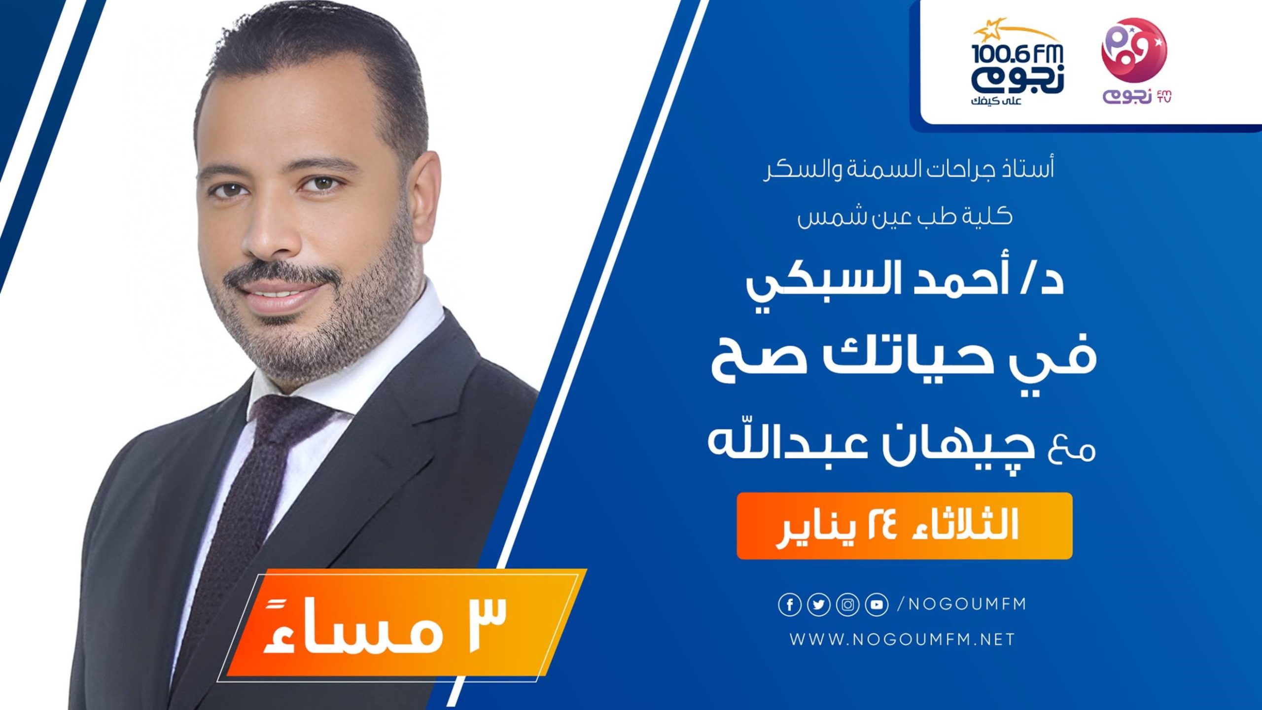 تستضيف جيهان عبد الله في برنامج «حياتك صح» على «نجوم إف إم»، يوم الثلاثاء، 24 يناير، الدكتور أحمد السبكي أستاذ جراحات السمنة والسكر كلية طب عين شمس.