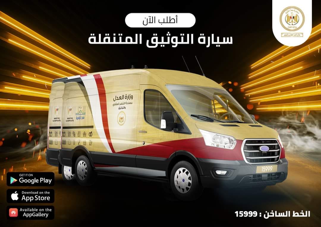 ودفعت وزارة العدل بما يناهز من 40 سيارة توثيق متنقلة، في مختلف المحافظات، وتم تجهيزها بكافة المعدات والأجهزة الحديثة، وتعمل على تقديم الخدمة لطالبيها بصورة حضارية، تدعيمًا لفروع التوثيق المزدحمة وتيسيرًا على المواطنين وللحد من الزحام.