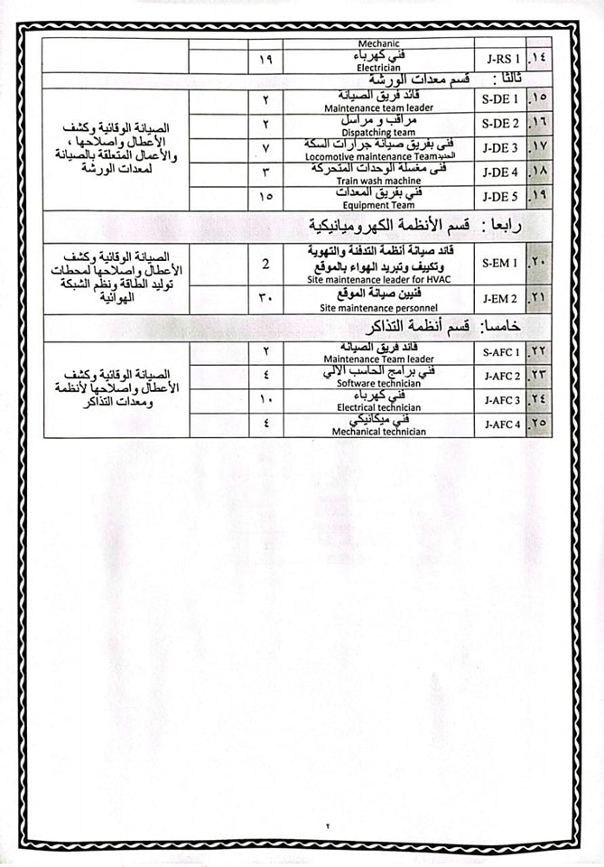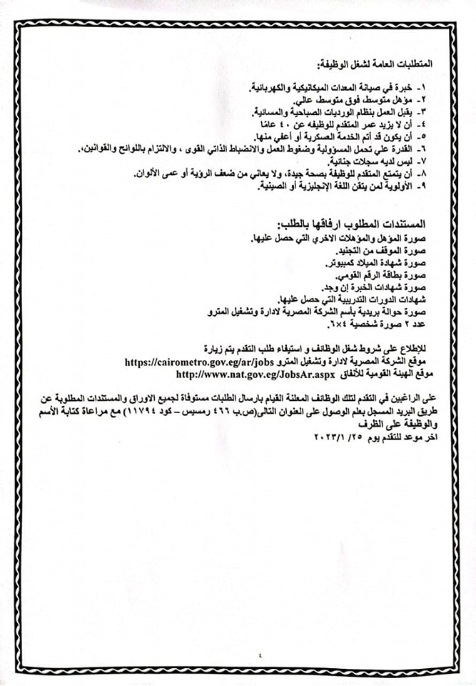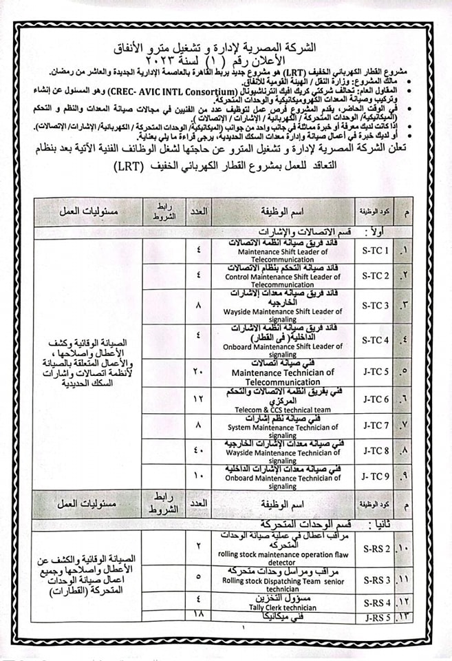 أعلنت الهيئة القومية للأنفاق عن 39 وظيفة متاحة والتي تشمل الفنيين في مجالات صيانة المعدات والنظم والتحكم (الميكانيكية/ الوحدات المتحركة / الكهربائية / الإشارات / الاتصالات)، حيث ينتهي التقدم لها في 25 يناير الجاري.