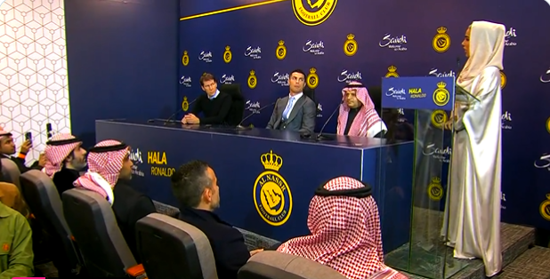 انطلق منذ قليل، حفل تقديم اللاعب البرتغالي كريستيانو رونالدو لاعب النصر السعودي الجديد أمام الجماهير في ملعب “مرسول بارك” بعد انضمامه رسميًا للفريق السعودي.