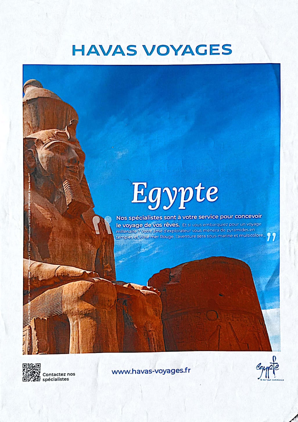 انطلقت حملة إعلانية مصرية فرنسية مشتركة اليوم الخميس وتستمر لمدة أسبوعين، تحت شعار «نحن في خدمتك لتنظيم رحلة أحلامك»، بدعم من هيئة تنشيط السياحة المصرية (ممثلة في المكتب السياحي في باريس) مع منظم الرحلات الفرنسي “Havas voyages” وذلك للترويج للسياحة في مصر.