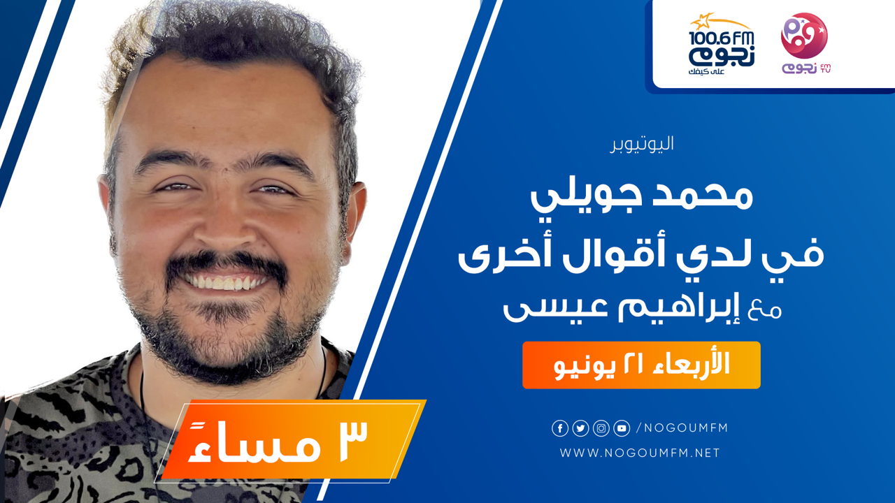 يحل اليوتيوبر محمد جويلي ضيفًا على برنامج «لدي أقوال أخرى»، يوم الأربعاء 21 يونيو، مع الكاتب والإعلامي إبراهيم عيسى على «نجوم إف إم».