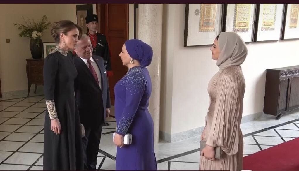 ووصلت السيدة انتصار السيسي، قرينة الرئيس عبد الفتاح السيسي، وابنته، إلى الأردن، لحضور مراسم حفل زفاف الأمير الحسين بن عبد الله الثاني ولي عهد الأردن، وكان في استقبالهما الملك عبد الله الثاني عاهل الأردن، وزوجته الملكة رانيا.