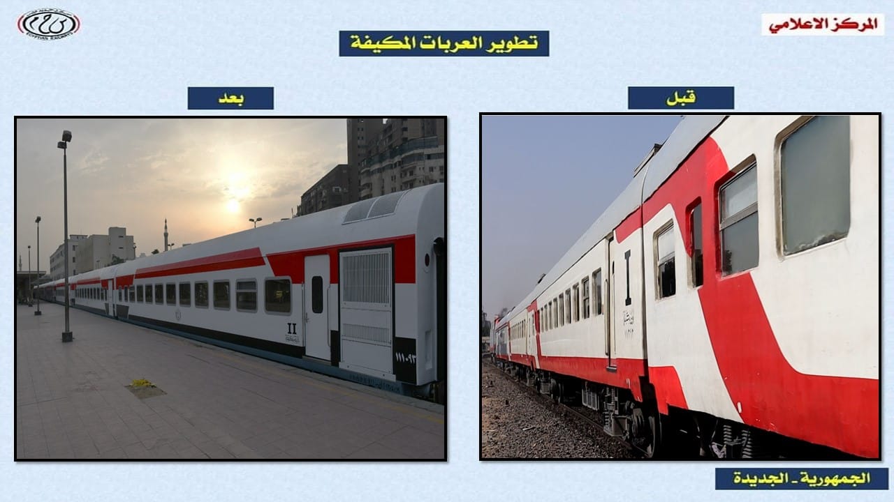 أعلنت وزارة النقل ممثلة في هيئة السكك الحديدية إعادة تشغيل ثاني قطار إسباني تم الانتهاء من إعادة تأهيله وتطويره وتحديثه بالكامل وذلك ضمن القطارات الإضافية التي سيتم تشغيلها بدءًا من 22/6/2023 قبل اجازة عيد الأضحى المبارك لتقديم أعلى مستويات الخدمة لركاب الخط وحيث سبق وتم تشغيل القطار الاول الذي أعيد تأهيله وتطويره وتحديثه بالكامل في عيد الفطر المبارك وعلى أن يتوالى اعادة تشغيل باقي ال10 قطارات اسباني الجاري إعادة تأهيلها وتطويرها وتحديثها تباعا طبقا للجدول المخطط وحيث يتكون كل قطار من (عربة بوفيه -4 عربات درجة أولى و٦ عربات درجة ثانية).
