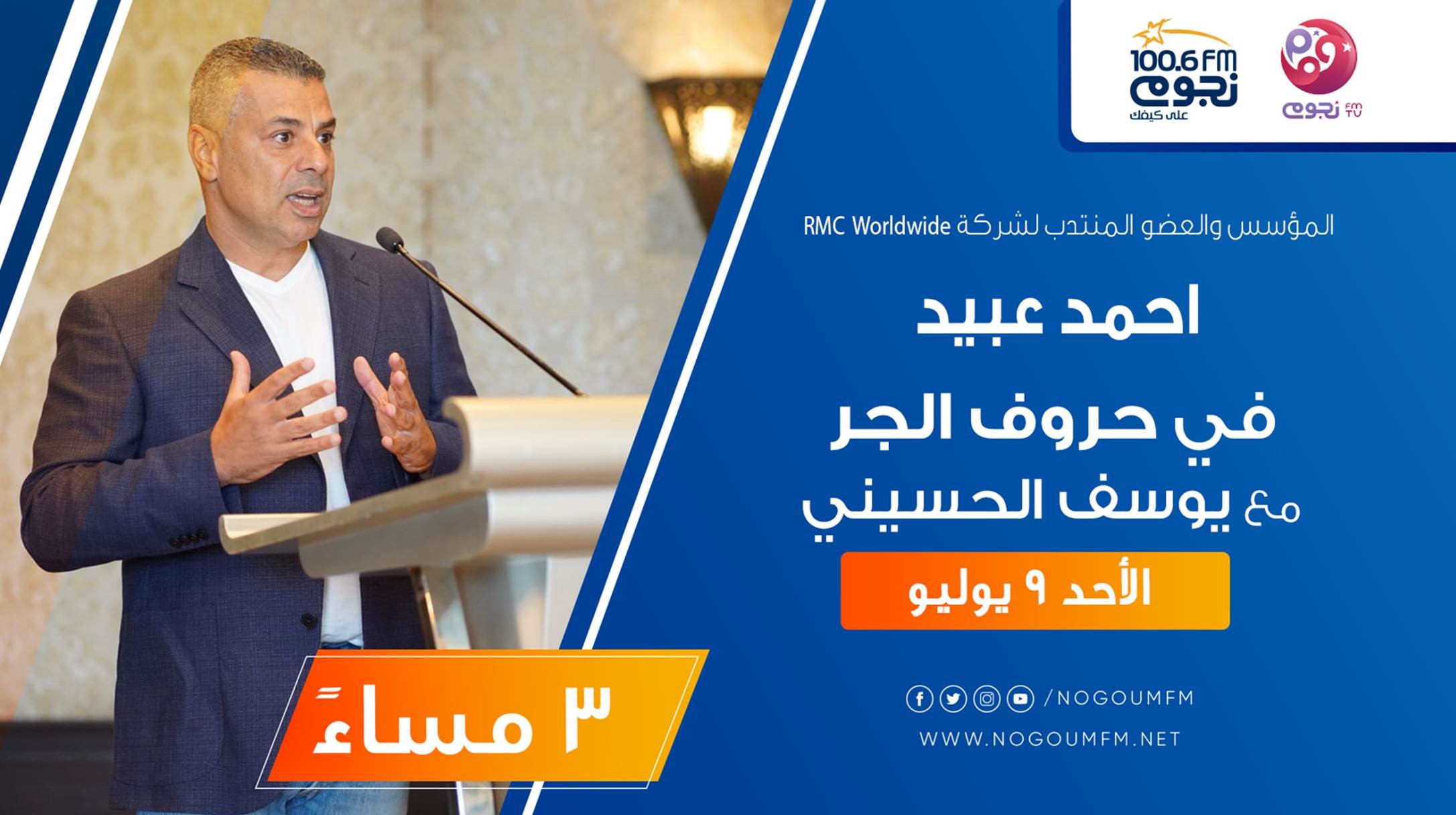يستضيف الإعلامي يوسف الحسيني، يوم الأحد 9 يوليو، عبر برنامج «حروف الجر» على «نجوم إف إم»، أحمد عبيد المؤسس والعضو المنتدب لشركة RMC Worldwide.