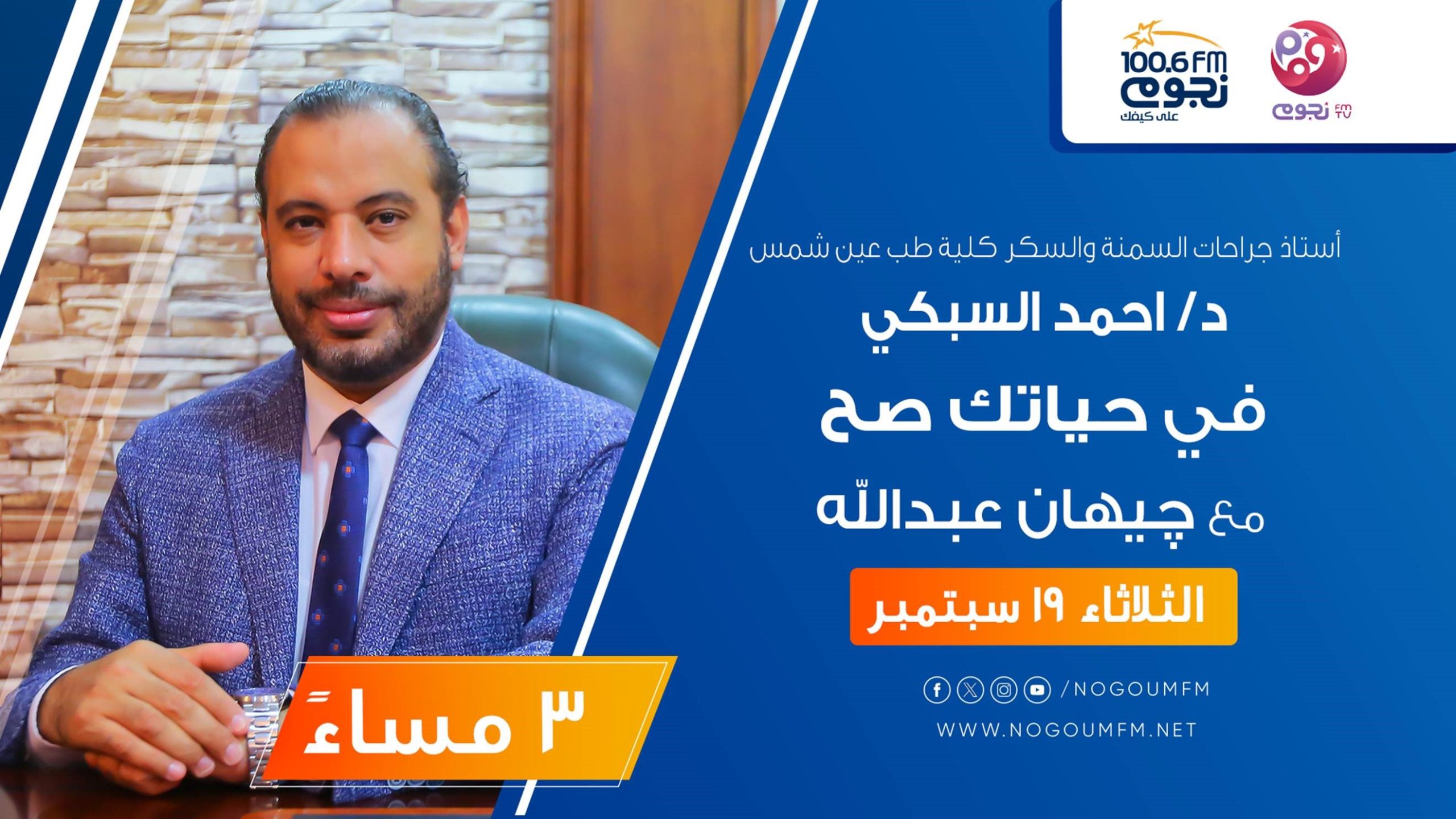 تستضيف جيهان عبد الله عبر برنامج «حياتك صح» على «نجوم إف إم»، الثلاثاء 19 سبتمبر، الدكتور أحمد السبكي أستاذ جراحات السمنة والسكر بكلية طب عين شمس.