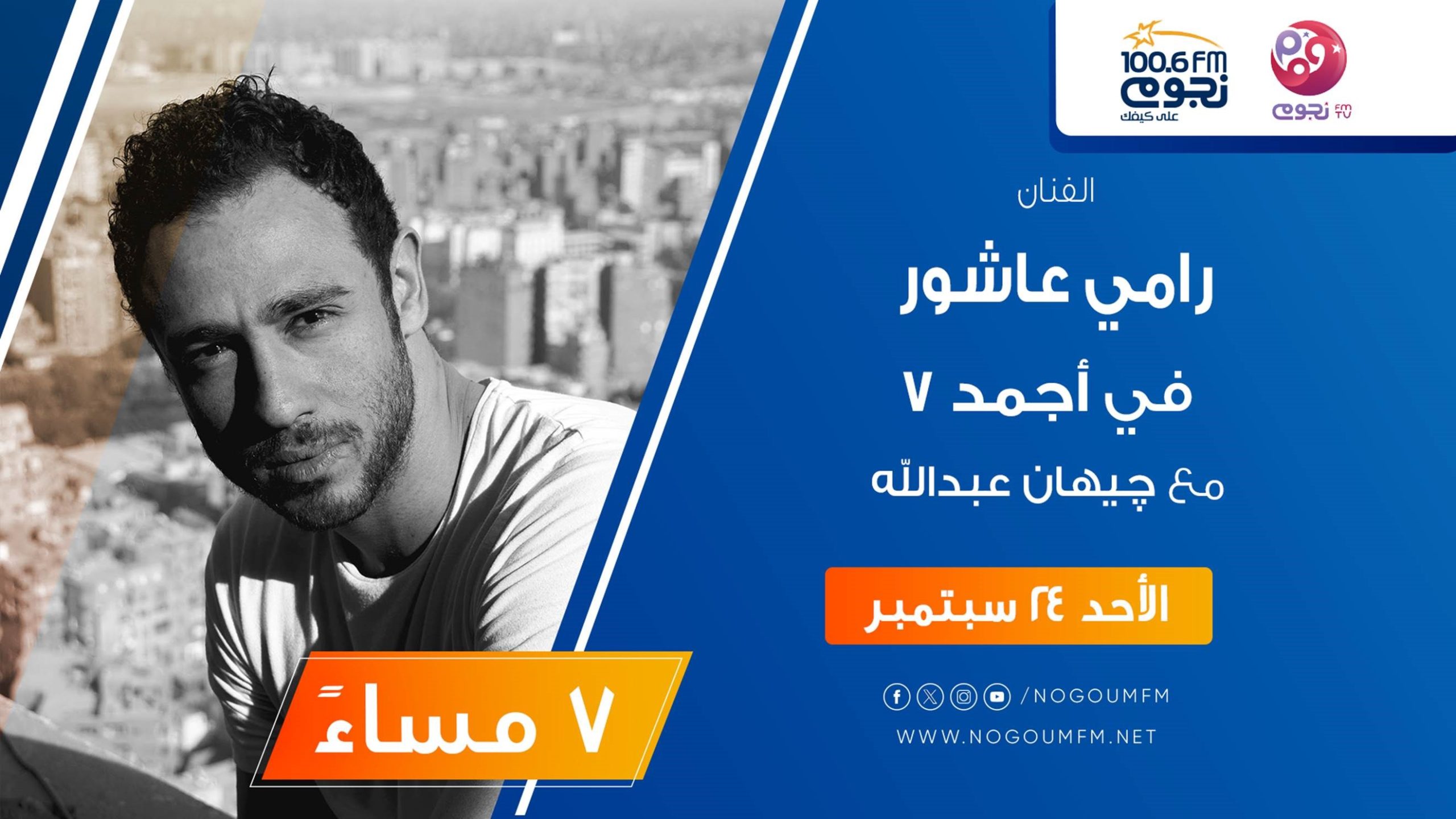 يحل الفنان رامي عاشور ضيفًا على برنامج «أجمد 7» مع جيهان عبد الله، على «نجوم إف إم»، اليوم الأحد 24 سبتمبر، للحديث عن أعماله الفنية.