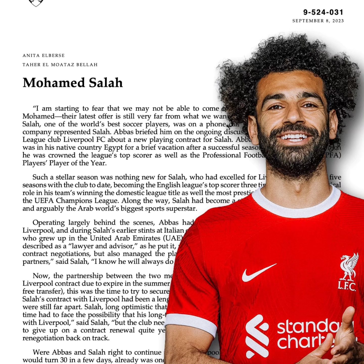 الدراسة التي نشر اللاعب المصري الأسطوري الصفحة الأولى منها تتحدث عن محمد صلاح كمؤسسة وعن رامي عباس وكيله كشريك أساسي في نجاح تلك المؤسسة، وهي الدراسة التي كتبتها الدكتورة أنيتا إلبرسي أستاذة التسويق في هارفارد والمختصة بمجال الرياضة والإعلام والترفيه، وشاركها في كتابة الدراسة الكاتب المصري وطالب ماجيستير إدارة الأعمال بجامعة هارفارد أيضًا طاهر المعتز بالله، الذي يحكي في تصريحات خاصة لموقع «نجوم إف.إم»، فكرة الدراسة وكواليس التحضير لها.