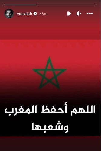 ونشر «صلاح» عبر ستوري حسابه على «إنستجرام» صورة لعلم المغرب وكتب «اللهم احفظ المغرب وشعبها».