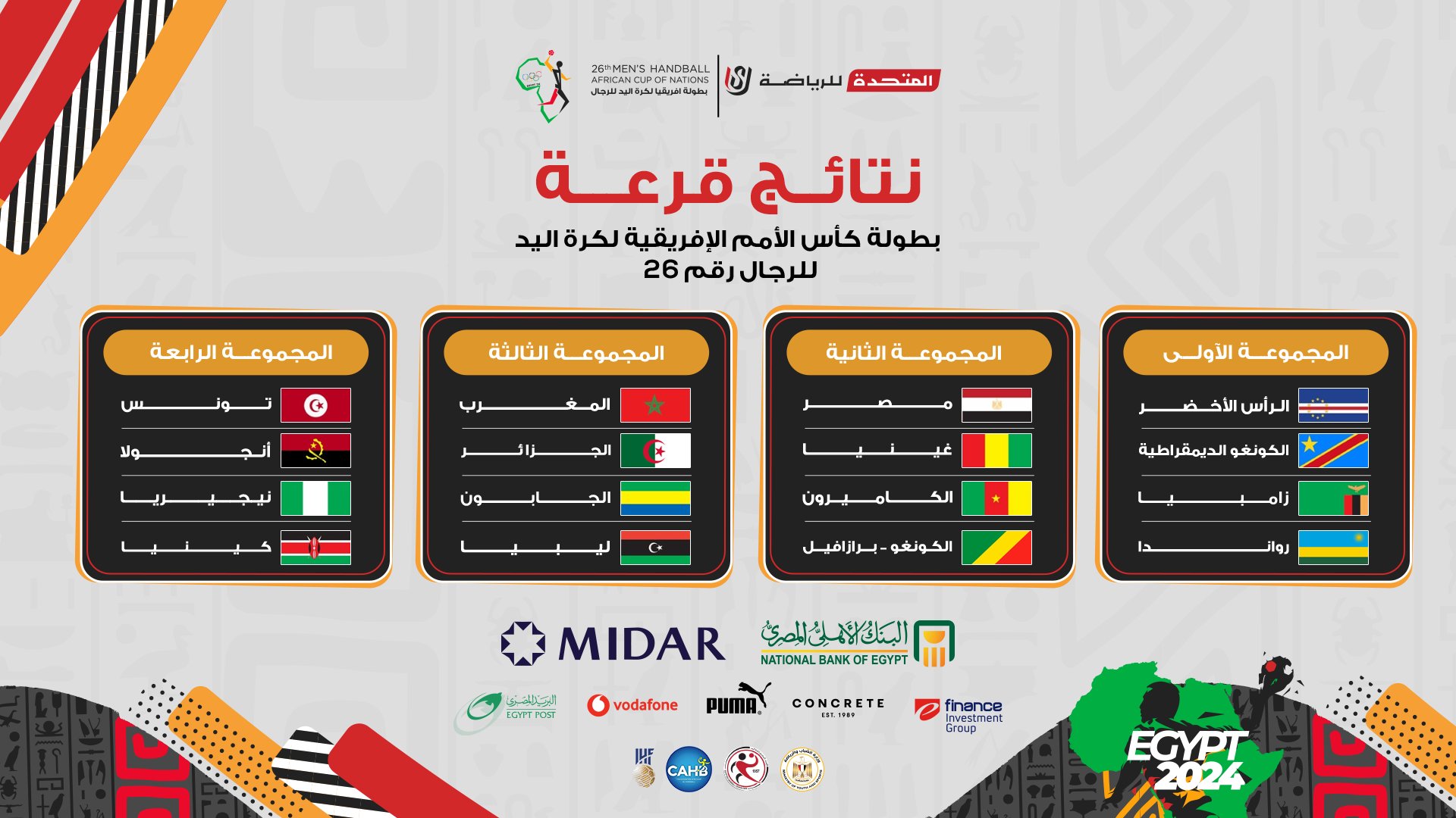 أسفرت قرعة كأس أمم أفريقيا لكرة اليد في نسختها الـ26 المقرر إقامتها في يناير المقبل بالقاهرة، عن وقوع منتخب مصر في المجموعة الثانية للبطولة.