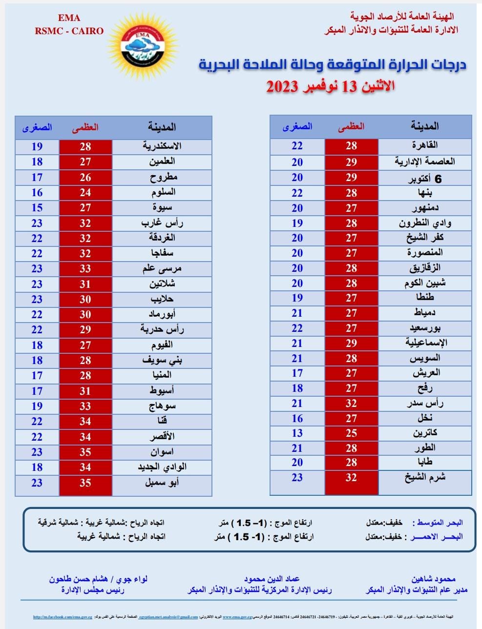 وبالنسبة لدرجات الحرارة فهي كالتالي: