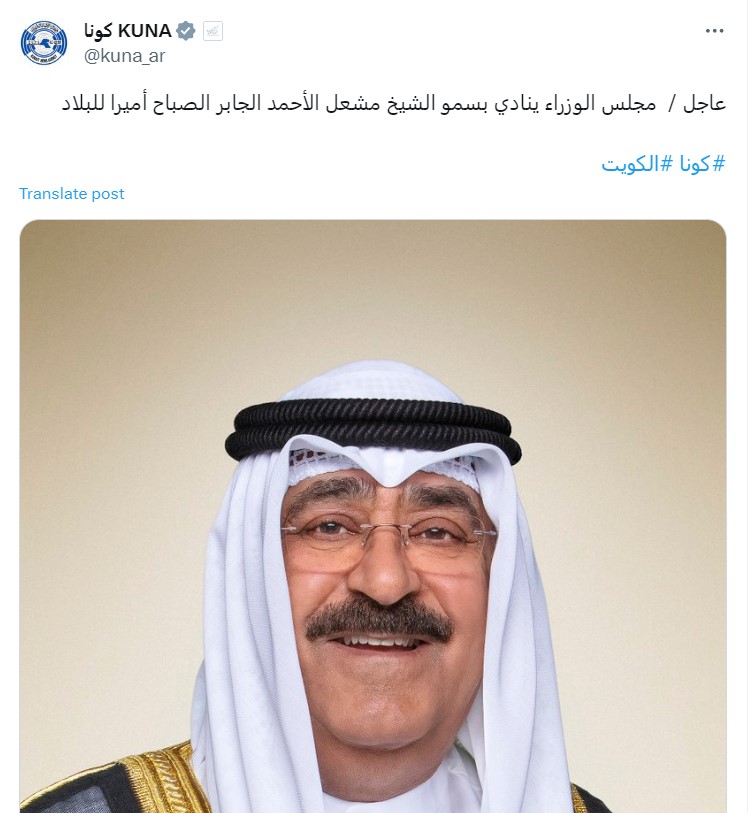 *صورة الخبر نقلا عن الحساب الرسمي لوكالة أنباء الكويت.