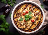 – نضع حوالي 4 طبقات ثم نضع اللحم المفروم ونكرر الطبقات فوق اللحم.