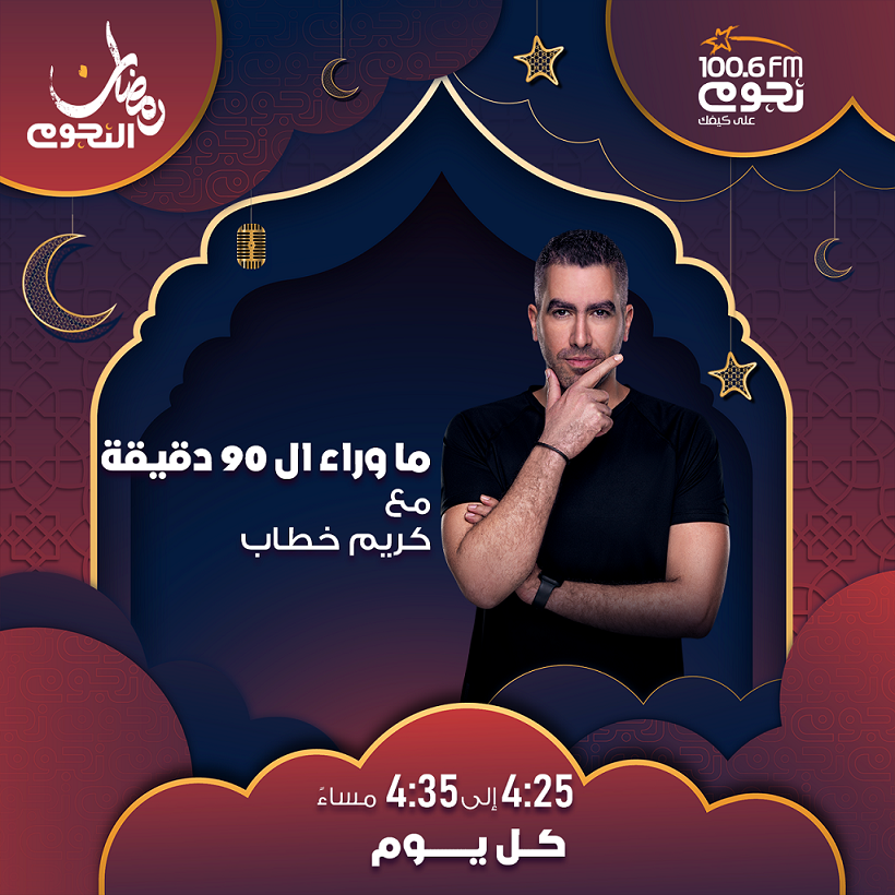 «ما وراء الـ90 دقيقة» يوميًا على «نجوم إف إم» في رمضان من الساعة ٤:٢٥ إلى ٤:٣٥ عصرًا، من تقديم كريم خطاب.