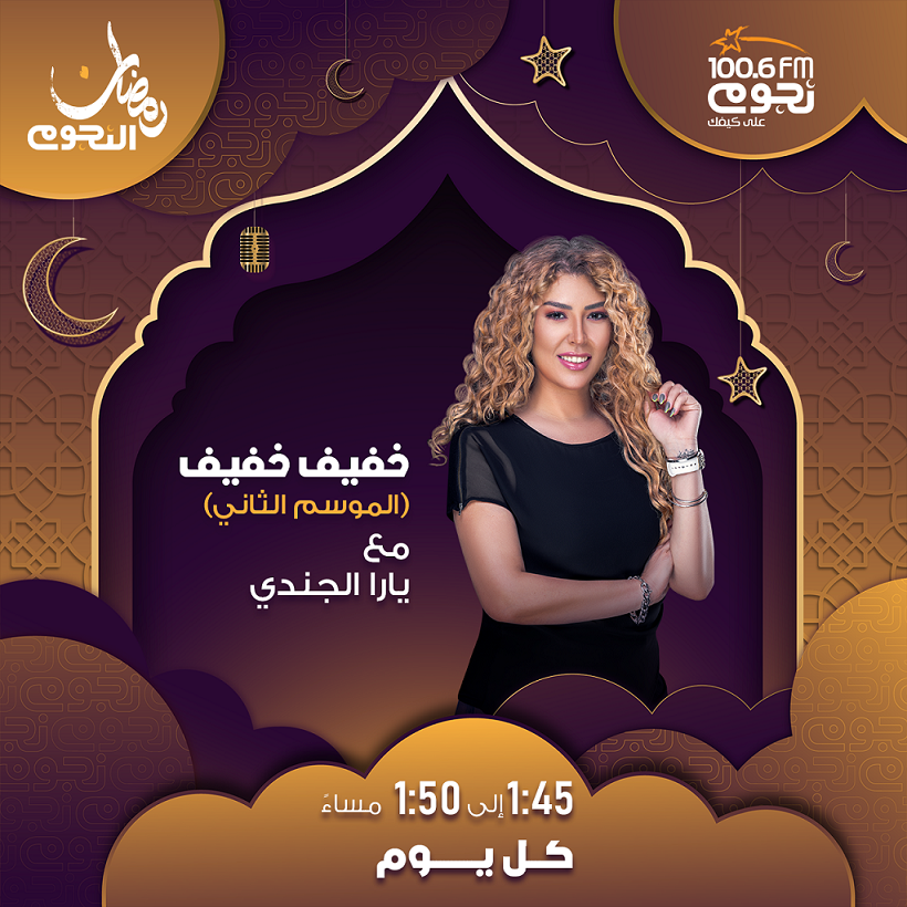 «خفيف خفيف» تقدمه يارا الجندي يوميًا في رمضان من الساعة 1.45 حتى 1.50 ظهرا.