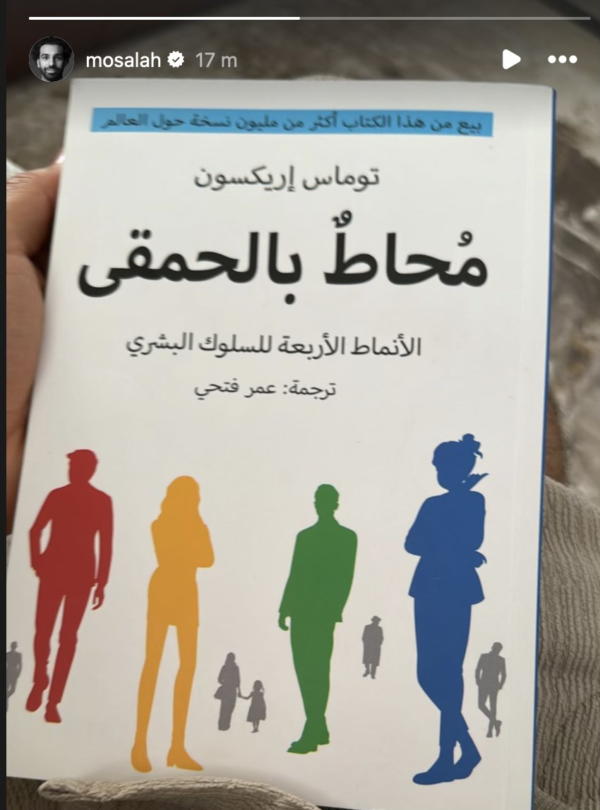 ويحمل غلاف الكتاب الذي يقرأه صلاح، اسم “محاط بالحمقى”، الأنماط الأربعة للسلوك البشري، للكاتب توماس إريكسون.