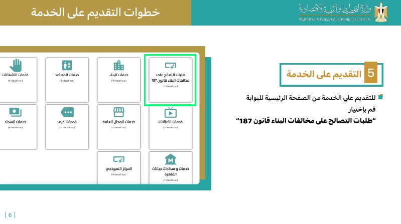 وفي الخطوات التالية تعرّف كيفية التقديم على الخدمة الإلكترونية لطلبات التصالح عن مخالفات البناء عبر البوابة الإلكترونية أو الهاتف المحمول.