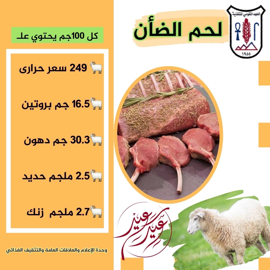 أوضح المعهد القومي للتغذية القيم الغذائية لأجزاء الأضحية المختلفة، من سعرات حرارية وبروتينات ودهون وحديد وزنك.