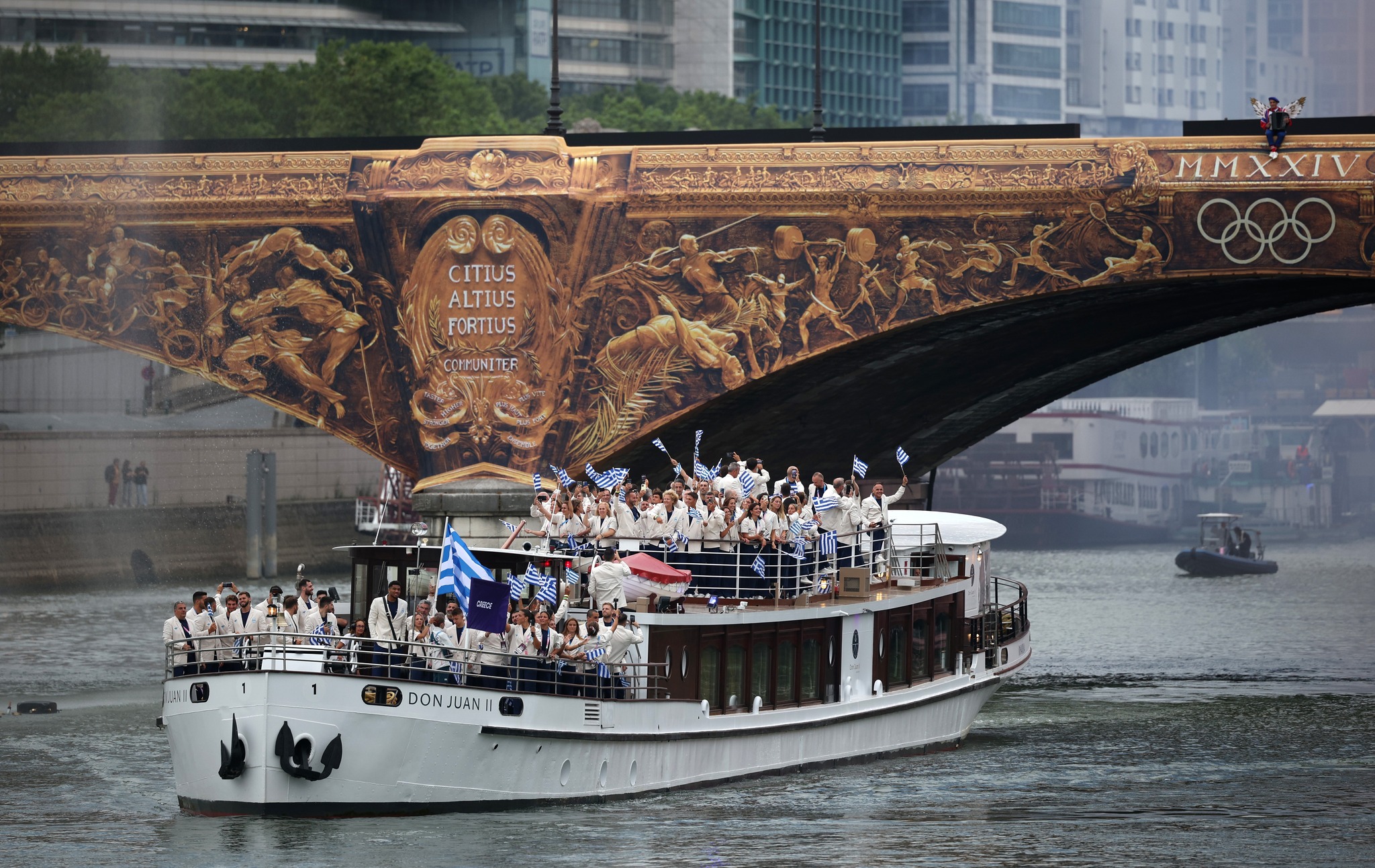 وحمل أسطول من الزوارق آلاف الرياضيين والفنانين على طول نهر السين في عرض يستمر نحو أربع ساعات، وسيؤدي الراقصون عروضهم على أسطح المباني.