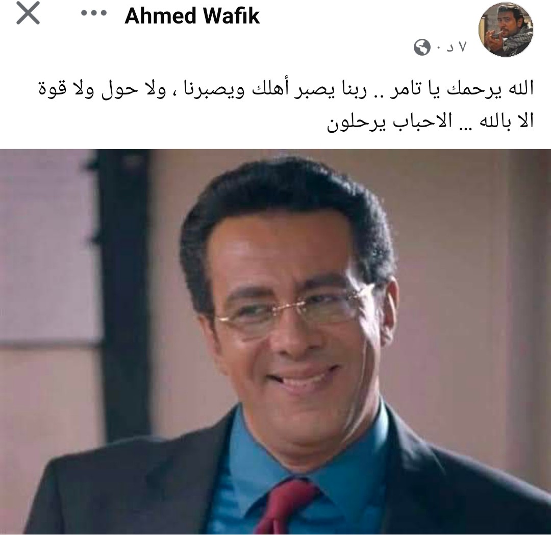 كما نعاه الفنان أحمد وفيق، عبر صفحته على «فيسبوك»، وعلق: «الله يرحمك يا تامر.. ربنا يصبر أهلك ويصبرنا، ولا حول ولا قوة الا بالله، الأحباب يرحلون».