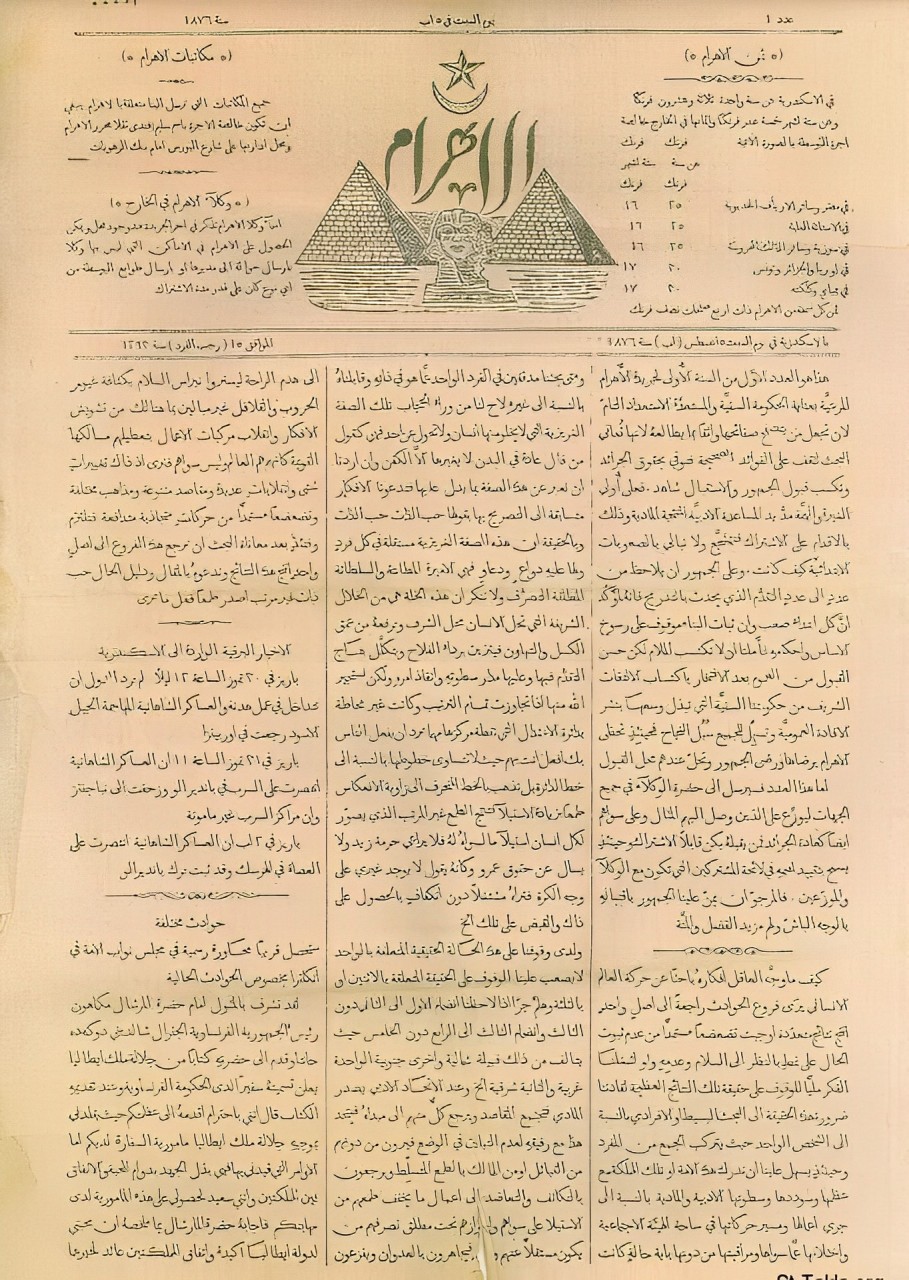 صورة من العدد الأول لجريدة الأهرام عبر موقعها