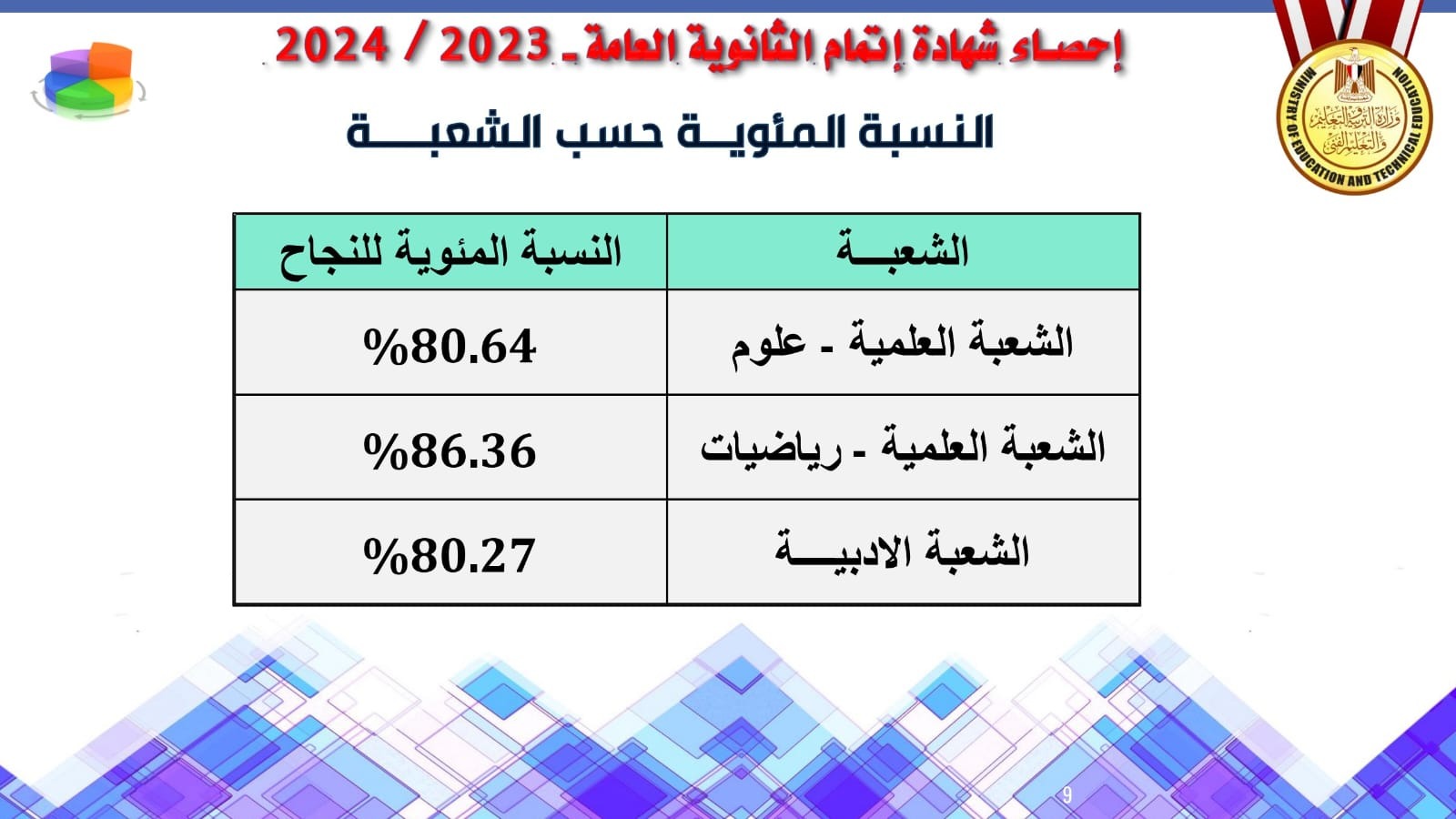 نسبة النجاح في الثانوية العامة شعبة علمي علوم 2024 تبلغ 80%