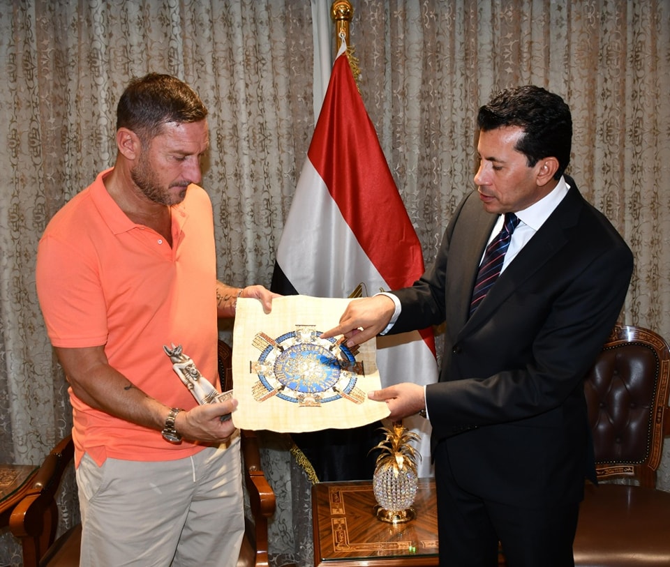 ورحب الوزير بالأسطورة الإيطالية توتي، مشيدًا بالزيارة، التي تأتي في إطار تعزيز التعاون الرياضي وتبادل الخبرات بين الدول.