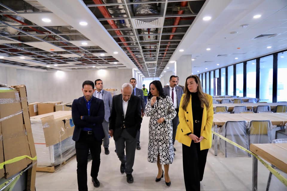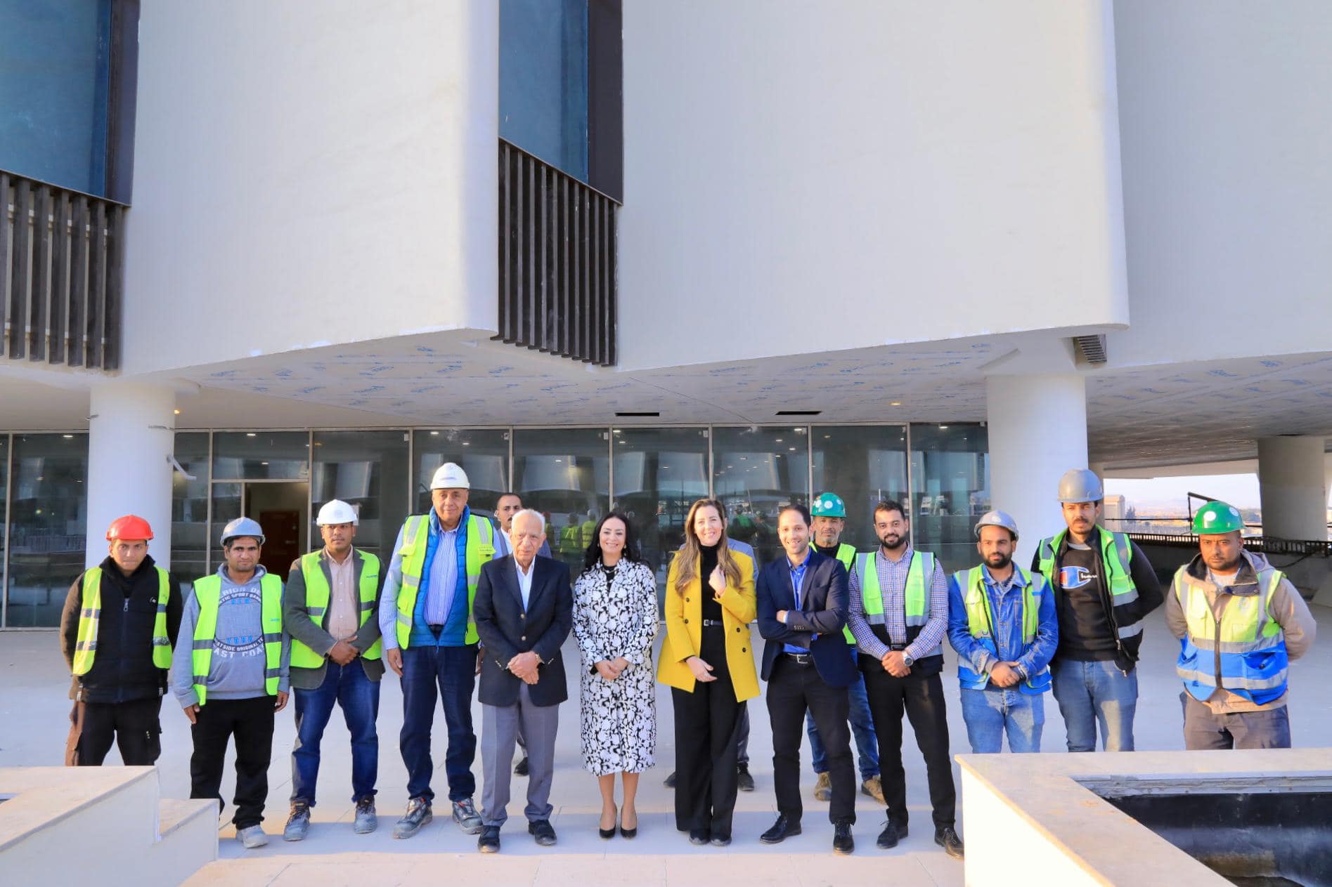وحرصت الدكتورة مايا مرسي على تفقد أروقة المركز المقرر افتتاحه العام المقبل 2025، مطلعة على التجهيزات الجارية به، كما التقت العاملين في الإنشاءات، مشيدة بالمستوى المتميز المصمم عليه المركز.