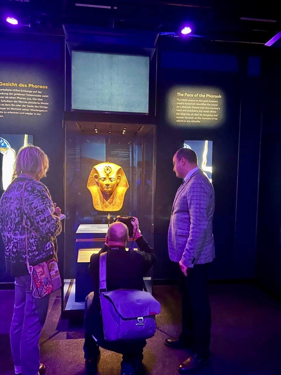 كما عقد مجموعة من اللقاءات الإعلامية مع عدد من وسائل الإعلام الألمانية دعا خلالها الشعب الألماني لزيارة المعرض قبل انتهاء رحلته بألمانيا، مشيراً إلى أن المعرض يعد هدية مصر للشعب الألماني خلال إجازات أعياد الميلاد المجيد ورأس السنة الميلادية، وفرصة كبيرة للعائلات الألمانية للتعرف بصورة أعمق على الحضارة المصرية القديمة، واصفاً المعرض بأنه وسيلة من وسائل الترويج السياحي لمنتج السياحة الثقافية وجذب مزيد من السائحين الألمان لزيارة مصر والتعرف على ما تحتويه من كنوز أثرية متفردة.