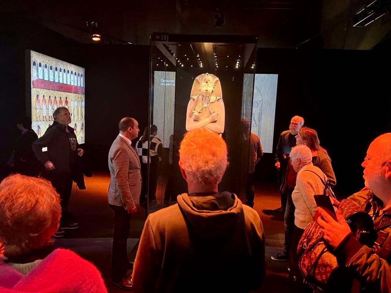 وخلال الجولة، التقى الأمين العام للمجلس الأعلى للآثار بالعديد من الزائرين الذين توافدوا من جميع المدن الألمانية لزيارة المعرض، معربين عن إعجابهم بالمعرض وما يضمه من القطع الأثرية التي تروي تاريخ الحضارة المصرية العريقة، مؤكدين على أن ما شاهدوه من روائع الفن المصري القديم والقطع الأثرية المتميزة بالمعرض زاد من رغبتهم في السفر إلى مصر لمشاهدة المقابر والمعابد التي جاءت منها هذه الكنوز.