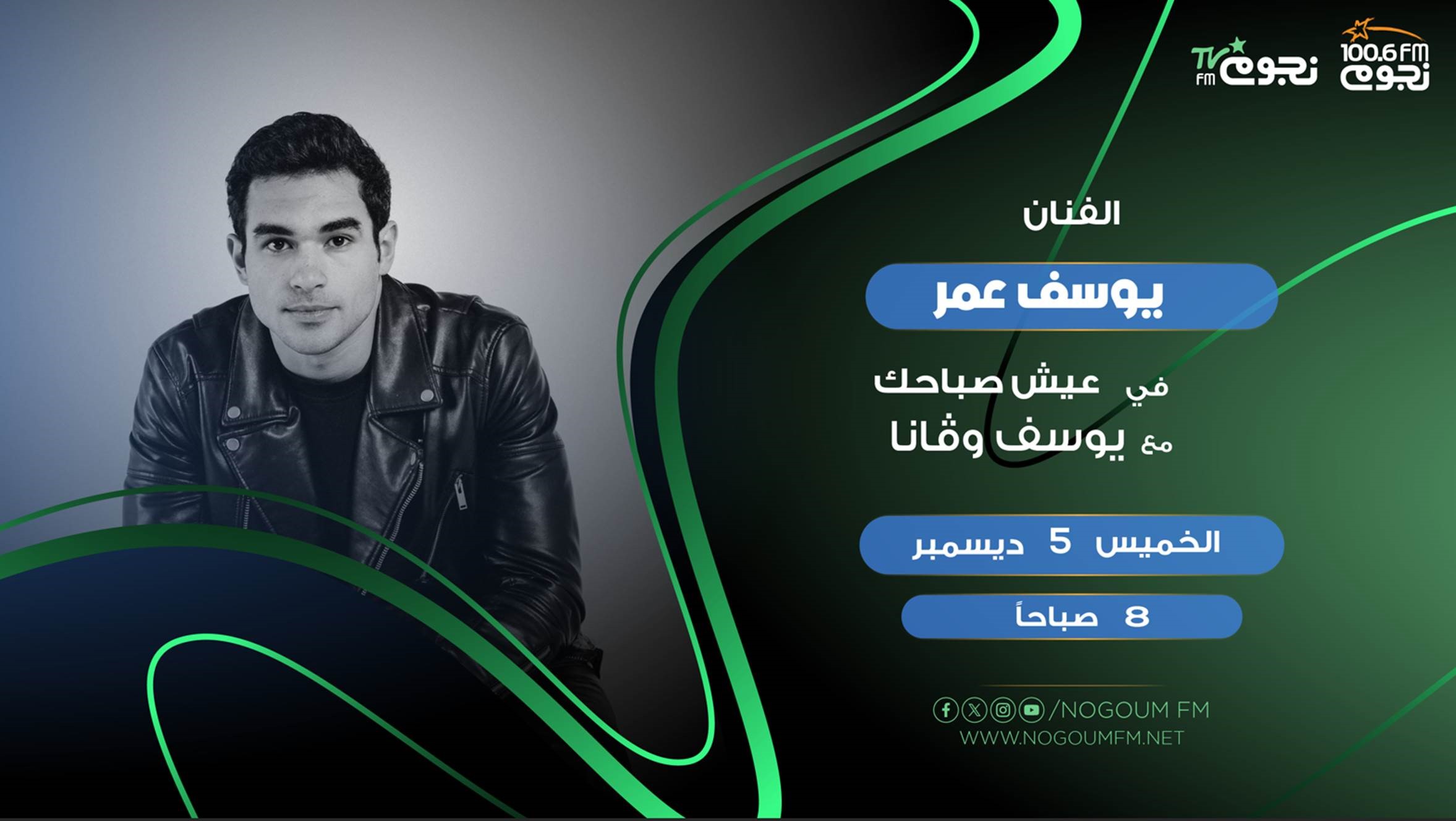 يستضيف يوسف التهامي وفانا إمام، الفنان يوسف عمر، عبر برنامج «عيش صباحك» على «نجوم إف إم» الخميس 5 ديسمبر.