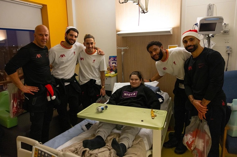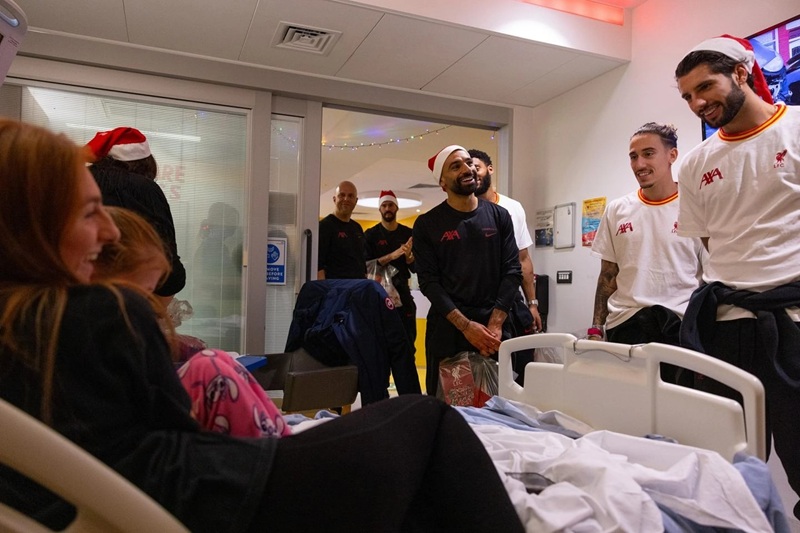 وارتدى لاعبو ليفربول الملابس الخاصة باحتفالات رأس السنة، وقدموا الهدايا وشاركوا في أنشطة متنوعة مع الأطفال الذين يتلقون العلاج هناك.