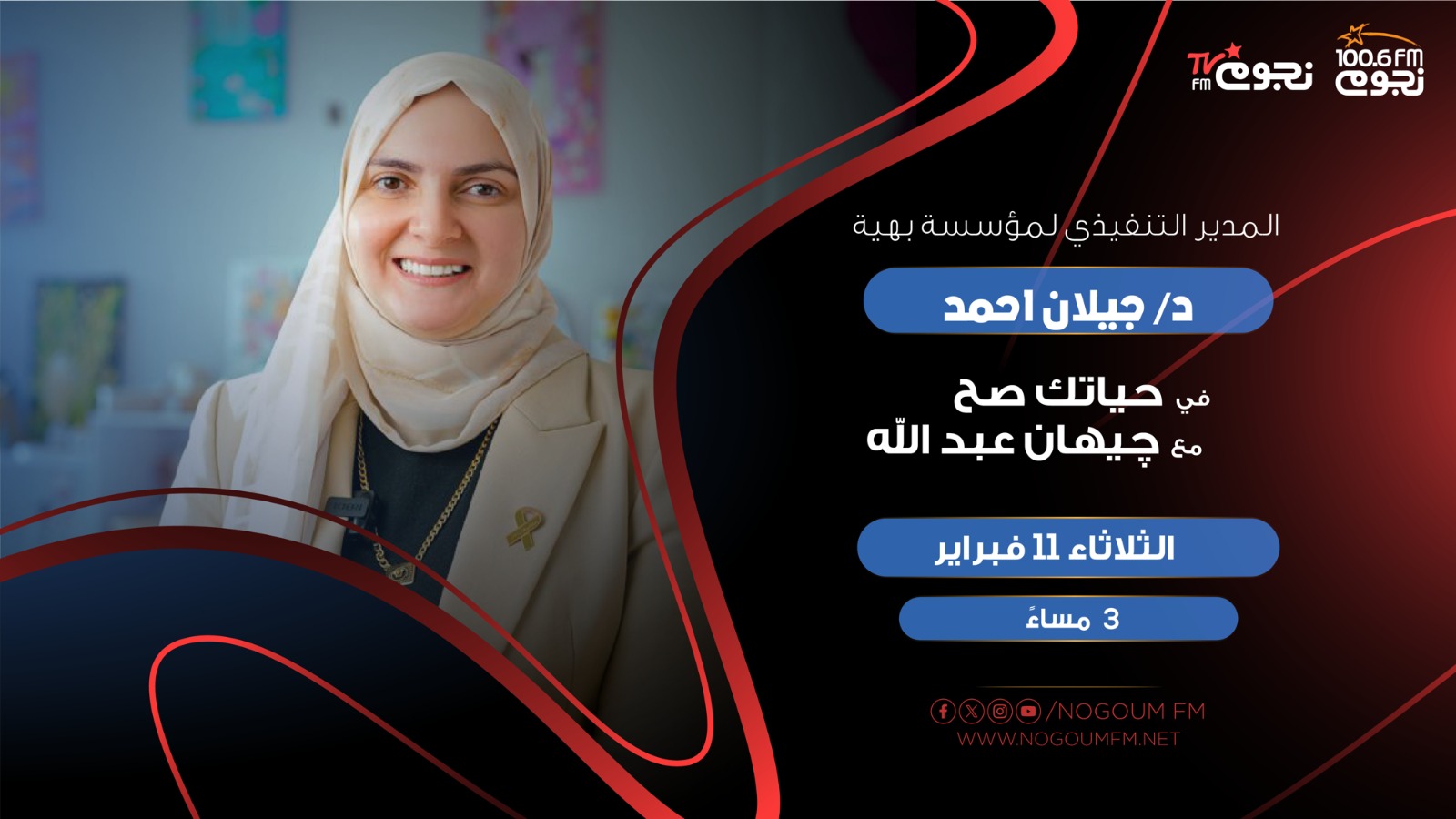 تستضيف جيهان عبد الله، الدكتورة جيلان أحمد المدير التنفيذي لمؤسسة «بهية»، عبر برنامج «حياتك صح» على «نجوم إف إم»، يوم الثلاثاء 11 فبراير.