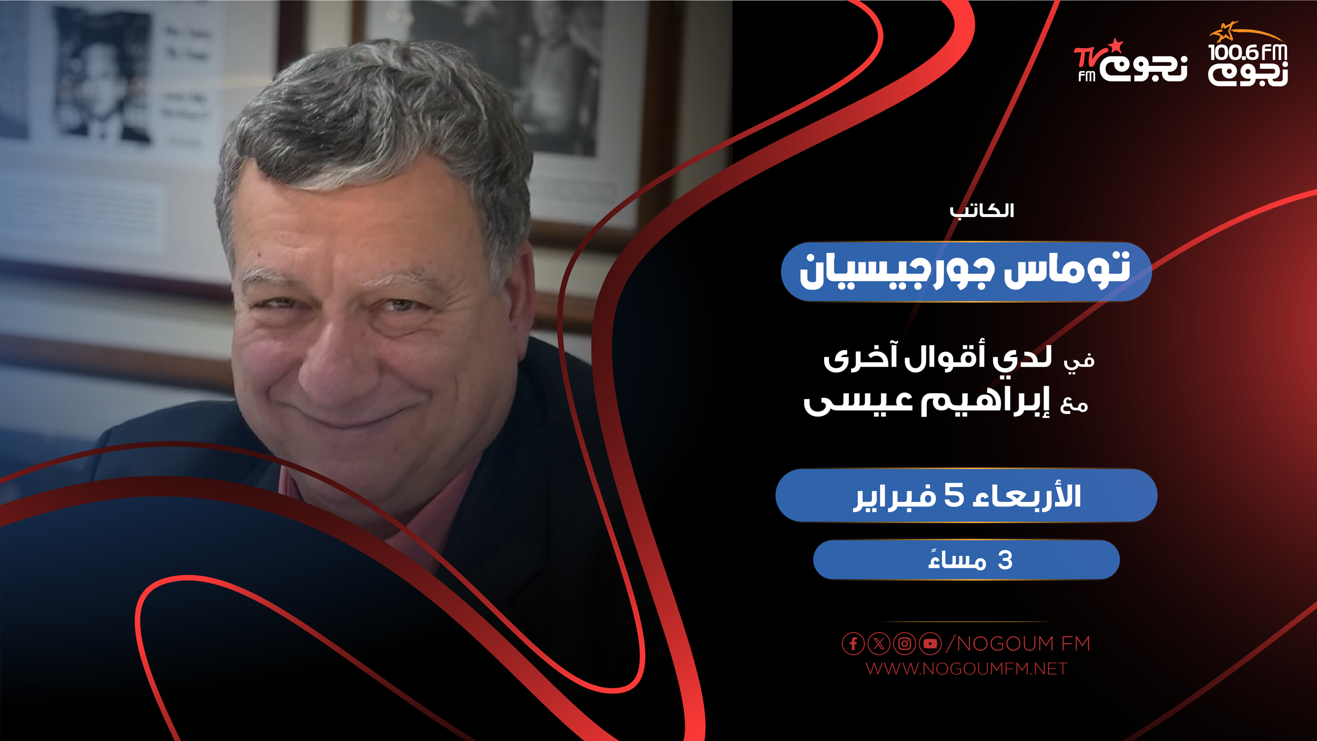 يستضيف الإعلامي إبراهيم عيسى، الكاتب توماس جورجيسيان، غدًا الأربعاء 5 فبراير، عبر برنامج «لدي أقوال أخرى»، على «نجوم إف إم».
