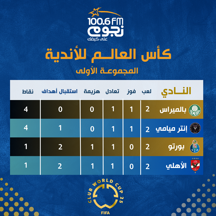 وتعقدت فرص الأهلي في التأهل إلى دور الـ16 بكأس العالم للأندية، حيث أصبح مصيره مرتبط بنتائج الفرق الأخرى قبل الجولة الثالثة، والتي يواجه فيها البطل المصري نظيره بورتو، بينما يلتقي إنتر ميامي مع بالميراس.