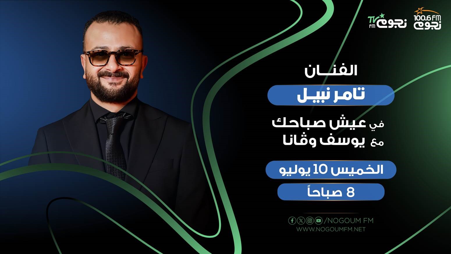 يستضيف يوسف التهامي وفانا إمام، الفنان تامر نبيل عبر برنامج «عيش صباحك» على «نجوم إف إم»، الخميس 10 يوليو 2025.