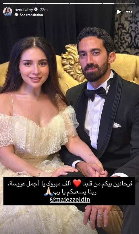 كما كتبت الفنانة هند صبري: «فرحانين بيكم من قلبنا.. ألف مبروك يا أجمل عروسة، ربنا يسعدكم يا رب».